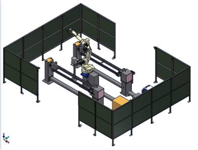 該機器人焊接工作站主要用于煤機結構件的自動焊接,采用頭尾架式單軸變位機+六軸聯(lián)動機器人雙工位布局,機器人安裝于雙工位中間。為方便進行多種規(guī)格工件焊接及參數(shù)設置,控制系統(tǒng)采用三菱PLC+工業(yè)觸摸屏方式進行控制和操作,使整套設備具有更大的柔性及靈活性,并可有效提高生產(chǎn)效率。